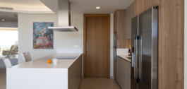 En el interior, la zona de estar y comedor de concepto abierto fluye sin esfuerzo hacia una espaciosa terraza, ideal para comer al aire libre y disfrutar del pintoresco entorno. La elegante cocina está totalmente equipada con electrodomésticos de alta gama y una práctica barra de desayuno, creando un espacio social y funcional.