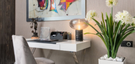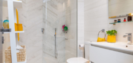 El dormitorio principal dispone de vestidor y baño en suite, mientras que otros dos dormitorios comparten un baño de elegante diseño.