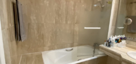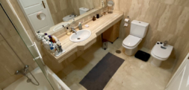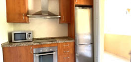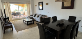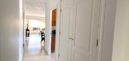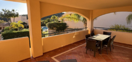 El apartamento de esquina en primera planta consta de un hall de entrada, cocina totalmente amueblada y equipada con lavadero independiente, amplio salón y una generosa terraza cubierta con vistas parciales al mar. Hay 3 dormitorios en total, todos con armarios empotrados, dos de ellos tienen baño en-suite y uno tiene un baño separado. Además el apartamento se beneficia de suelos de mármol crema en todo, ventanas de doble acristalamiento, A / C frío y caliente