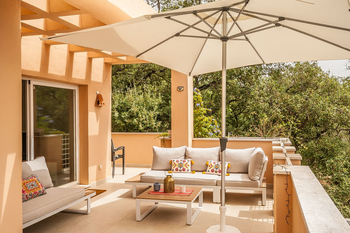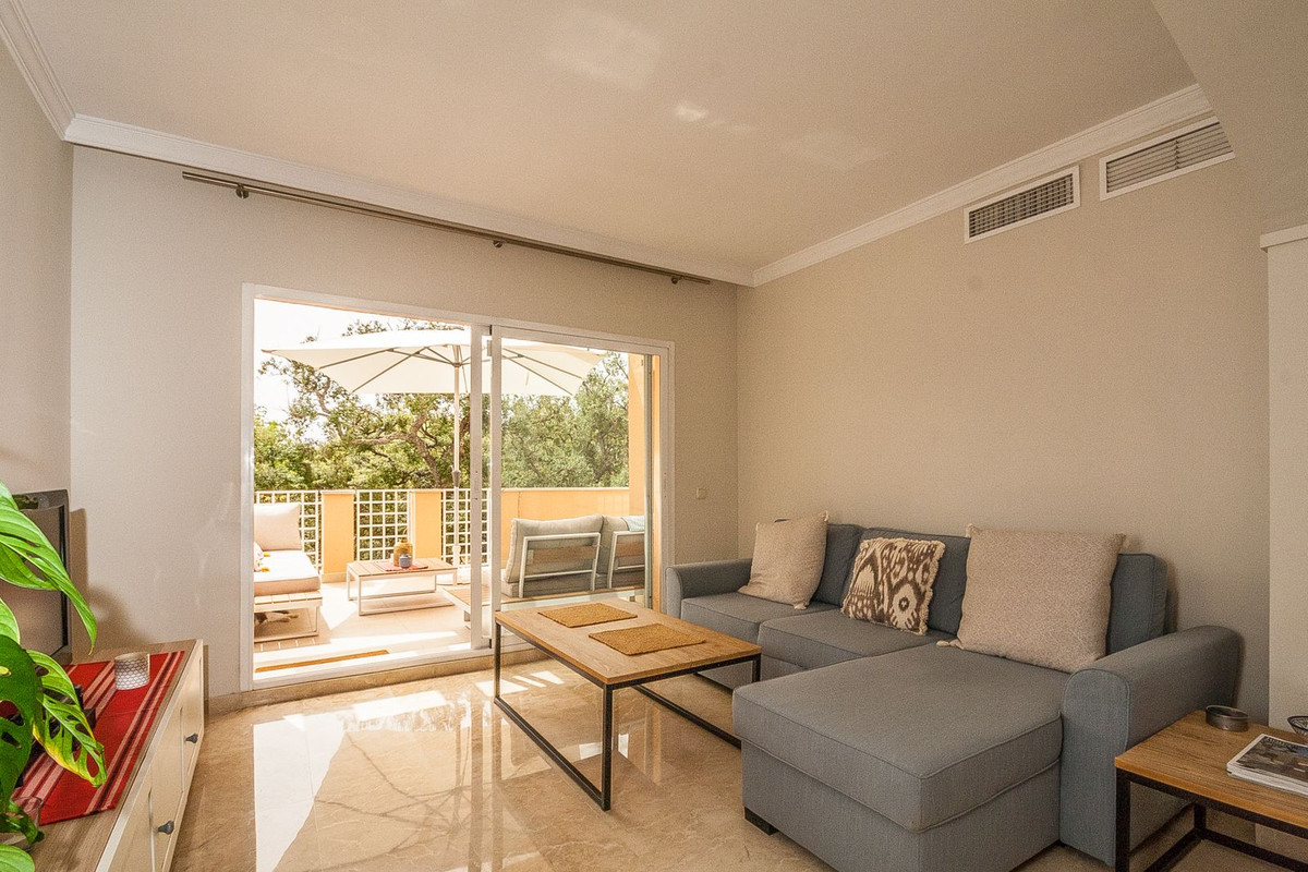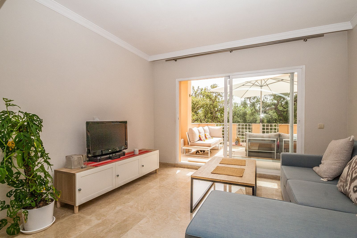 Amplio apartamento de esquina de 3 dormitorios en Los Jardines de Santa María Golf. Situado en la primera planta ofrece una superficie total de 130 metros cuadrados más terraza. La comunidad está totalmente cerrada y ofrece seguridad las 24 horas. Hay 4 piscinas al aire libre rodeadas de jardines. Los jardines está situado a sólo 5 minutos a pie de tiendas y restaurantes y a sólo 10 minutos de la playa. La propiedad cuenta con una plaza de garaje subterráneo privado.