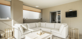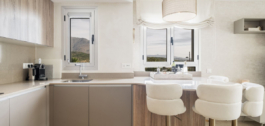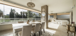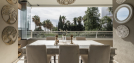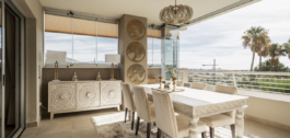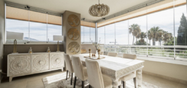 La vivienda cuenta con una cocina diseñada a medida, interiores recién pintados y empapelados, mosquiteras y cortinas transparentes para mayor comodidad y estilo. Lo más destacado es la terraza de 57 m², que se puede cerrar completamente para ampliar perfectamente su espacio vital y permitir disfrutar durante todo el año de las vistas al mar, al golf y al campo.