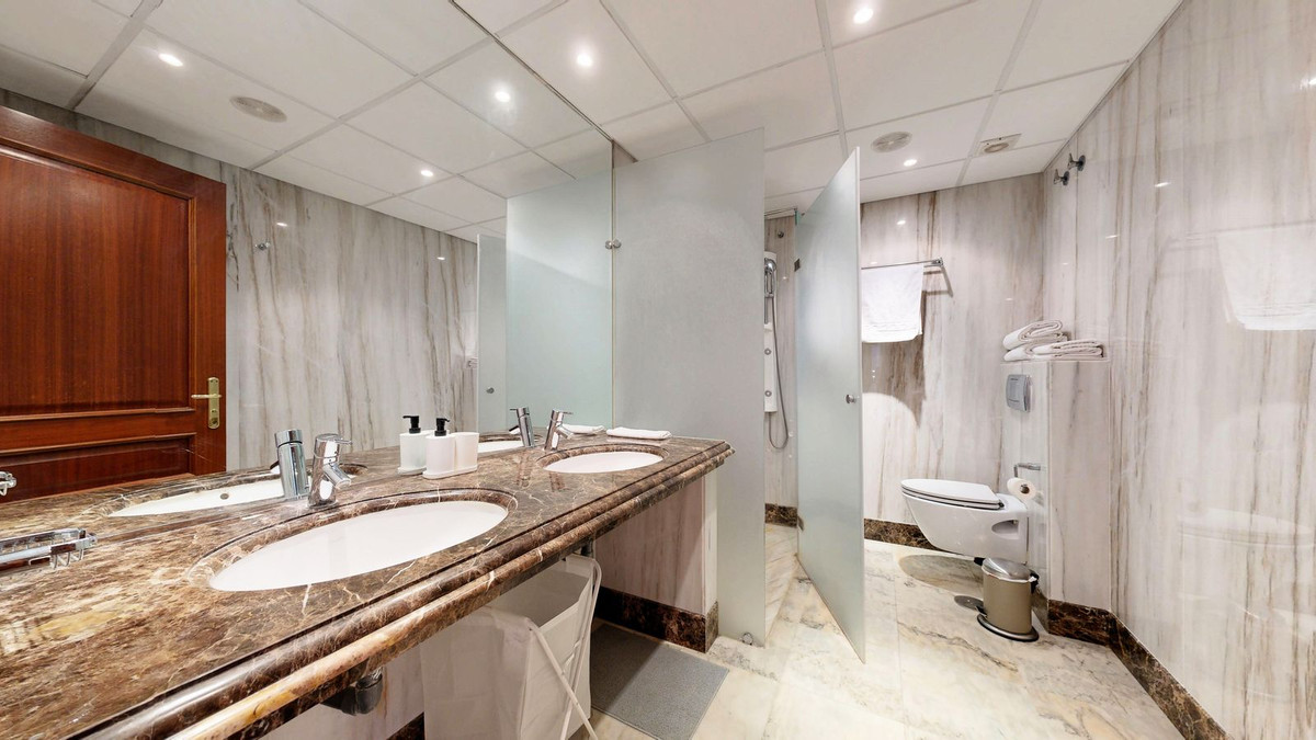 Este amplio apartamento de dos dormitorios y dos baños ofrece un diseño luminoso y funcional que se abre a una gran terraza orientada al sur con vistas directas al Mediterráneo. Cada rincón ha sido concebido para transmitir amplitud y bienestar, integrando la vida interior y exterior de forma natural. Aquí, los días comienzan con el sol colándose por las ventanas del suelo al techo y terminan con la brisa marina como compañera.