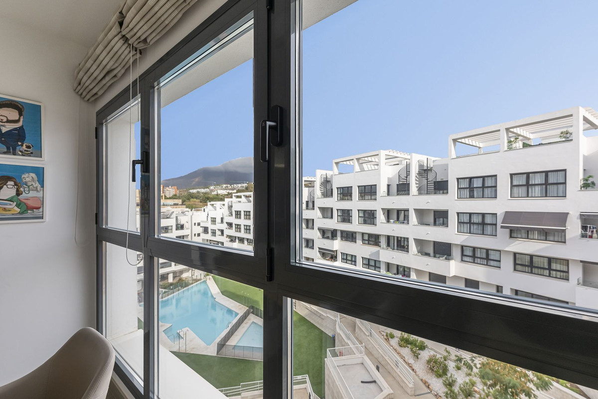 Precioso apartamento seminuevo situado en la tercera planta de un cuidado complejo residencial en la zona de la Sierra de Estepona. Con una superficie construida de 116 m², esta vivienda destaca por su luminosidad y excelente calidad de acabados. Cuenta con un amplio salón-comedor con acceso directo a una bonita terraza que ofrece agradables vistas al complejo y a la sierra.