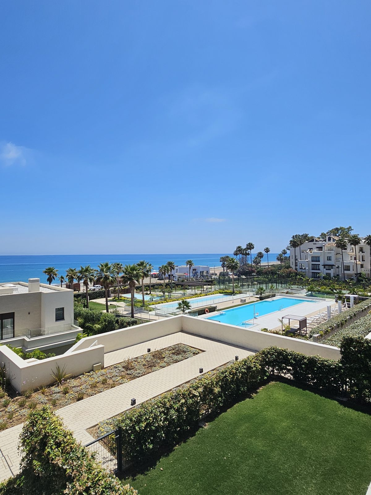Se trata de un apartamento perfecto junto al mar, que consta de 2 dormitorios y 2 baños, una cocina abierta con isla y un salón desde donde se puede disfrutar de una magnífica vista del mar Mediterráneo. La sala de estar y el dormitorio principal están conectados a la terraza cubierta de 40m2. El apartamento está situado en la 1ª planta, con orientación sur. Hay un garaje subterráneo y trastero.