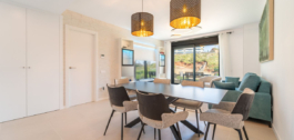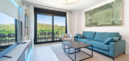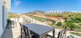 Apartamento a estrenar orientado al este, con 3 dormitorios, 2 baños, amplio salón-comedor, cocina americana totalmente amueblada y equipada con electrodomésticos, lavadero con lavadora, amplia terraza de 22m2 con vistas a la montaña y parciales al mar. Dormitorio principal con vestidor y baño ensuite. Aire acondicionado frío y calor, armarios empotrados en todos los dormitorios y salón, persianas en dormitorios y salón. Incluye una plaza de garaje y trastero.