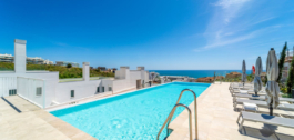 Zona comunitaria con piscina de agua salada, solarium y gimnasio.
