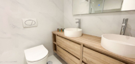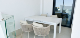 El apartamento cuenta con tres dormitorios, incluyendo una suite principal con baño privado y vestidor, un dormitorio doble con grandes armarios empotrados, y una habitación con dos camas y un amplio armario empotrado. Hay dos cuartos de baño modernos con duchas, que ofrecen comodidad y funcionalidad. La zona de estar consta de una cocina americana totalmente equipada conectada a un salón-comedor luminoso y acogedor. Éste conduce a una terraza parcialmente cubierta de 24 m², que ofrece agradables vistas al mar y a las montañas cercanas. Aunque no está totalmente abierta, las vistas proporcionan una maravillosa sensación de espacio.