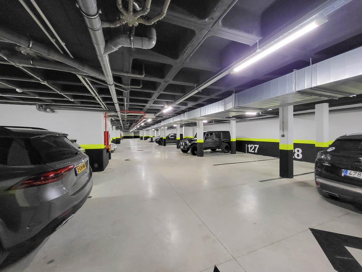 Dos amplias plazas de aparcamiento, una de las cuales incluye una estación de carga para coches eléctricos/híbridos y un trastero exclusivo.
