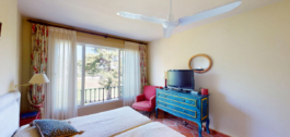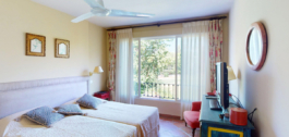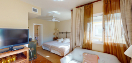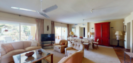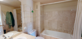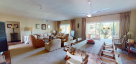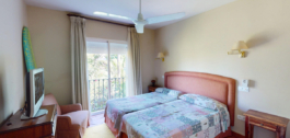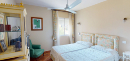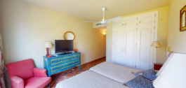 Este elegante apartamento, creado combinando dos propiedades, ofrece un espacio único en una sola planta con 4 amplios dormitorios y 4 baños, dos de ellos en suite. La distribución cuenta con dos entradas independientes: una con acceso directo a la cocina y otra que conduce a un luminoso hall de entrada, desde el que se accede a un amplio salón conectado con una espaciosa terraza cubierta, ideal para disfrutar de las relajantes vistas al campo de golf.