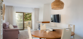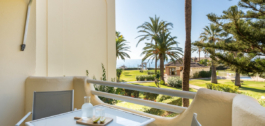 Este apartamento está situado en una prestigiosa urbanización cerrada de primera línea de playa con amplios y cuidados jardines. Goza de preciosas vistas al mar y a la vegetación circundante. La orientación sur proporciona mucha luz natural, y el balcón es un lugar perfecto para relajarse y disfrutar de la vista. En el interior, una acogedora chimenea añade un toque acogedor. La comunidad ofrece excelentes instalaciones, incluyendo una pista de tenis, una pista de paddle, un club social y dos piscinas.