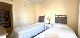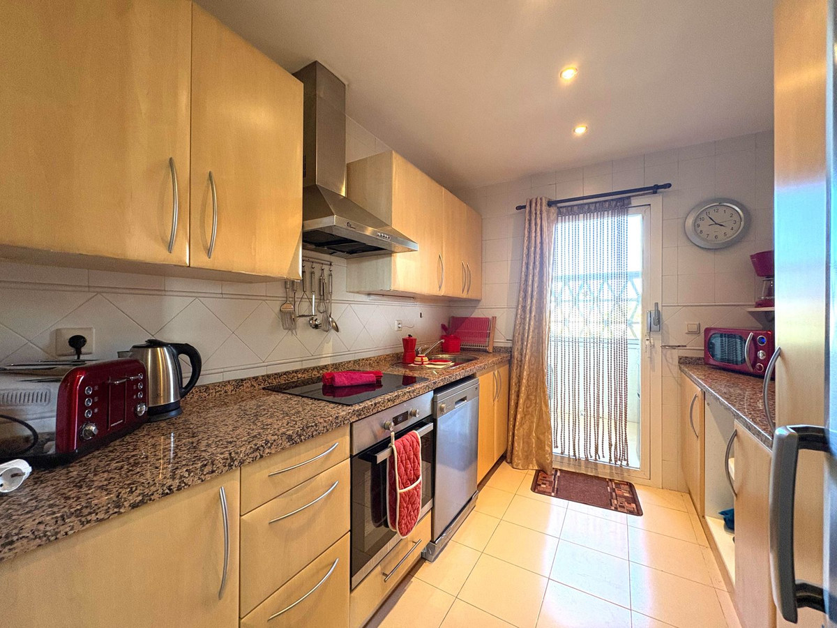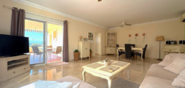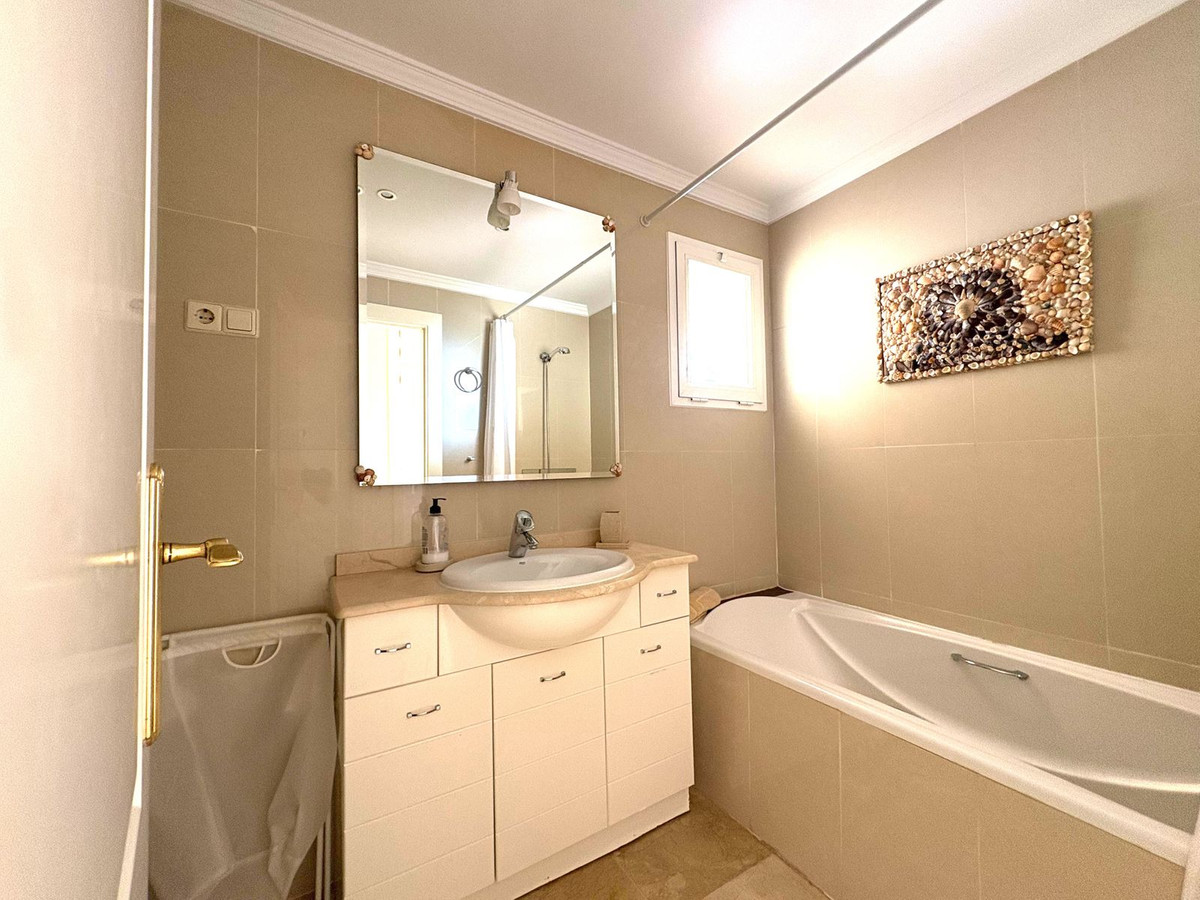 Amplio y decorado con gusto, este apartamento de tres dormitorios y dos baños tiene 116 m2 y cuenta con un espacioso salón de 42m2. La mayor de las dos terrazas, de 33 m2, está orientada al este y ofrece impresionantes vistas panorámicas del pintoresco paisaje que se extiende hacia Santana Golf. Mientras tanto, la terraza más pequeña da a la piscina principal y al jardín meticulosamente ajardinado. Cada habitación está equipada con unidades individuales de aire acondicionado para un confort personalizado. El interior cuenta con suelos de mármol de alto brillo, y la cocina está totalmente equipada con electrodomésticos modernos. Otras comodidades incluyen aparcamiento subterráneo, trastero, caja fuerte, videoportero y mucho más. El apartamento se ofrece sin muebles, con margen de negociación.