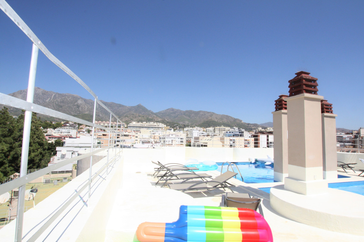 Espectacular apartamento de lujo en el Centro de Marbella, con orientación sur y vistas parciales al mar esta situado junto al faro una de las mejores zonas de Marbella a tan solo 50 mts. del paseo marítimo y puerto deportivo. Es una propiedad exclusiva de lujo en un edificio consolidado para clientes exigentes. La vivienda cuenta con un salón muy amplio con terraza incorporada y una cocina americana abierta al salón totalmente equipada, un amplio dormitorio con baño en suite y una terraza también incorporada con grandes ventanales.
