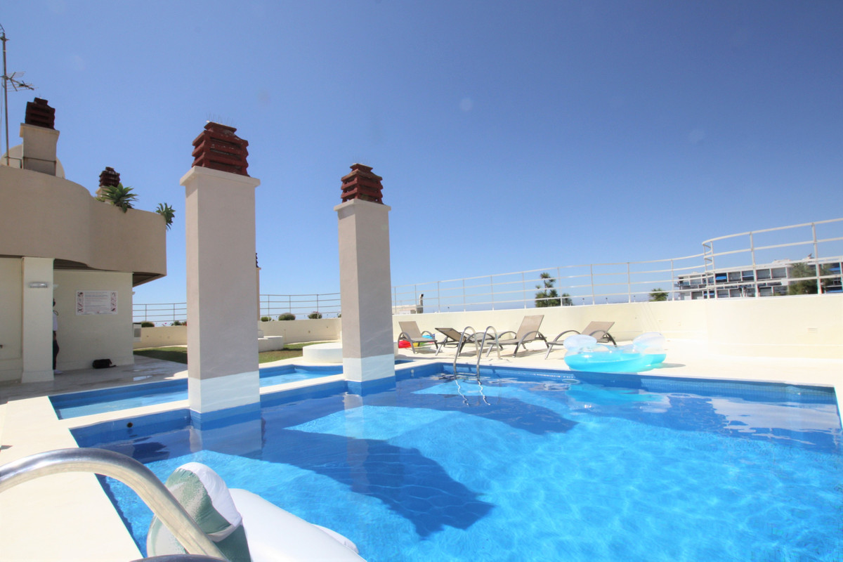 En la última planta del Edificio hay una zona de Solarium y Piscina con magníficas vistas al mar y a la montaña.