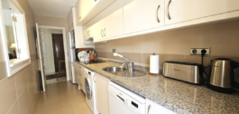 Amplio salón comedor con acceso directo a la terraza. Cocina amueblada y equipada comunicada con el salón-comedor mediante pasaplatos y también con acceso directo a la terraza.