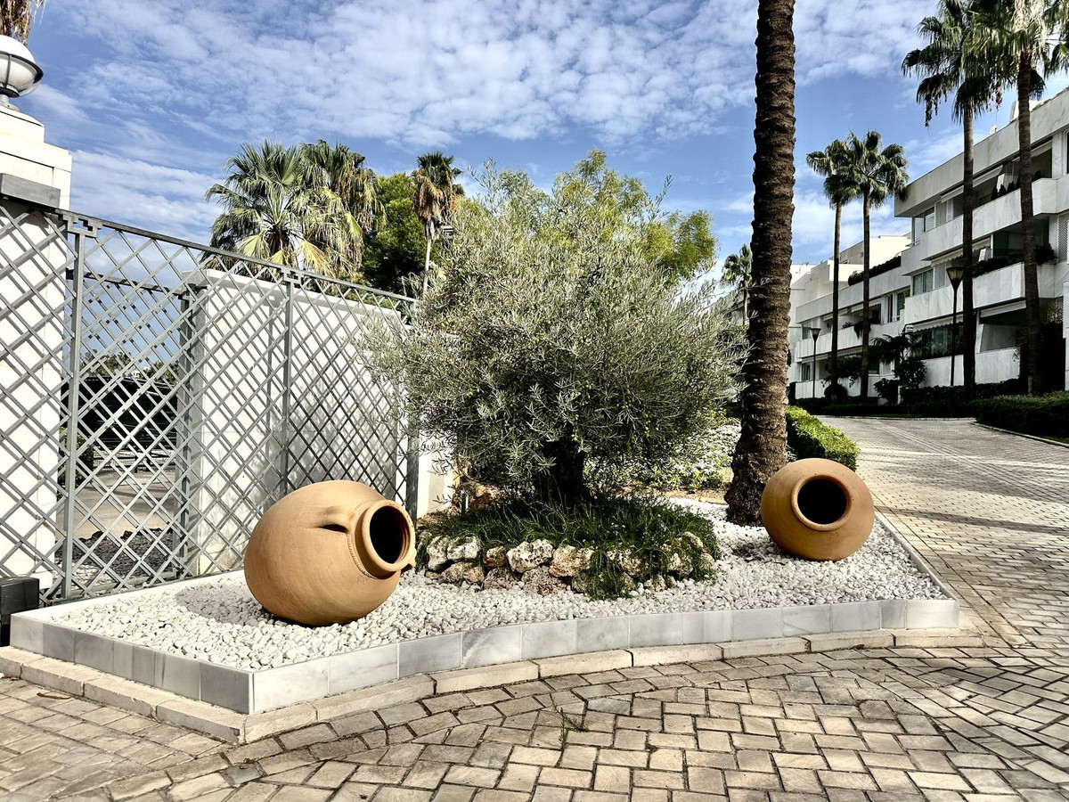 Este apartamento excepcionalmente amplio y luminoso ha sido recientemente renovado con materiales de primera calidad y elegantes muebles de diseño, ofreciendo una verdadera casa llave en mano en una de las comunidades más prestigiosas de Nueva Andalucía.