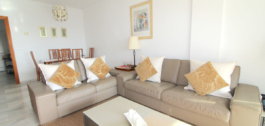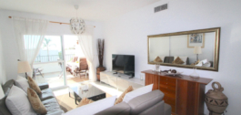 Un buen tamaño de estar y comedor con acceso a una terraza de 12m2 que se actualizó con cortinas de cristal desde donde se tiene el mar, la piscina y vistas panorámicas.
