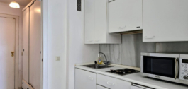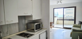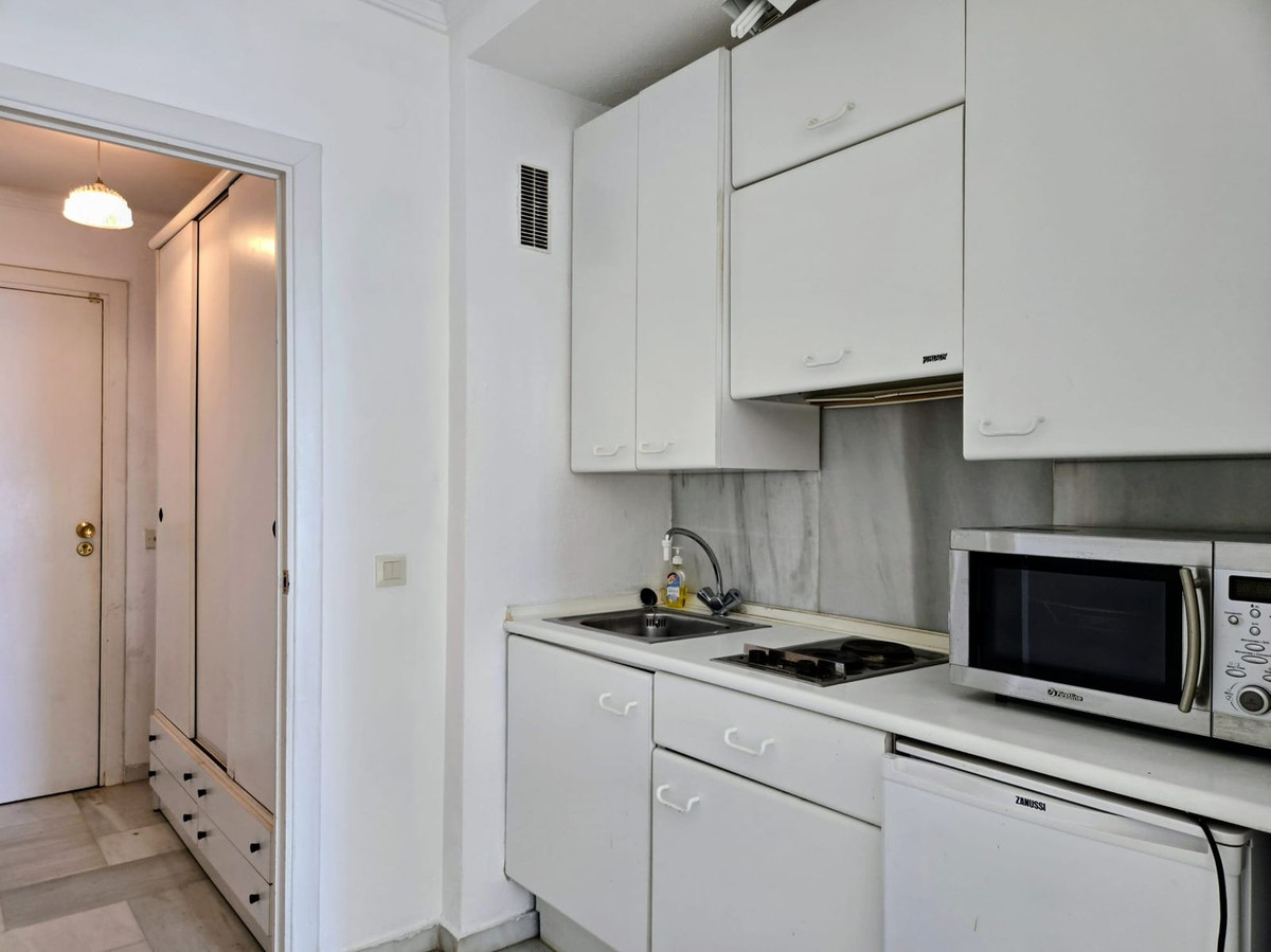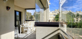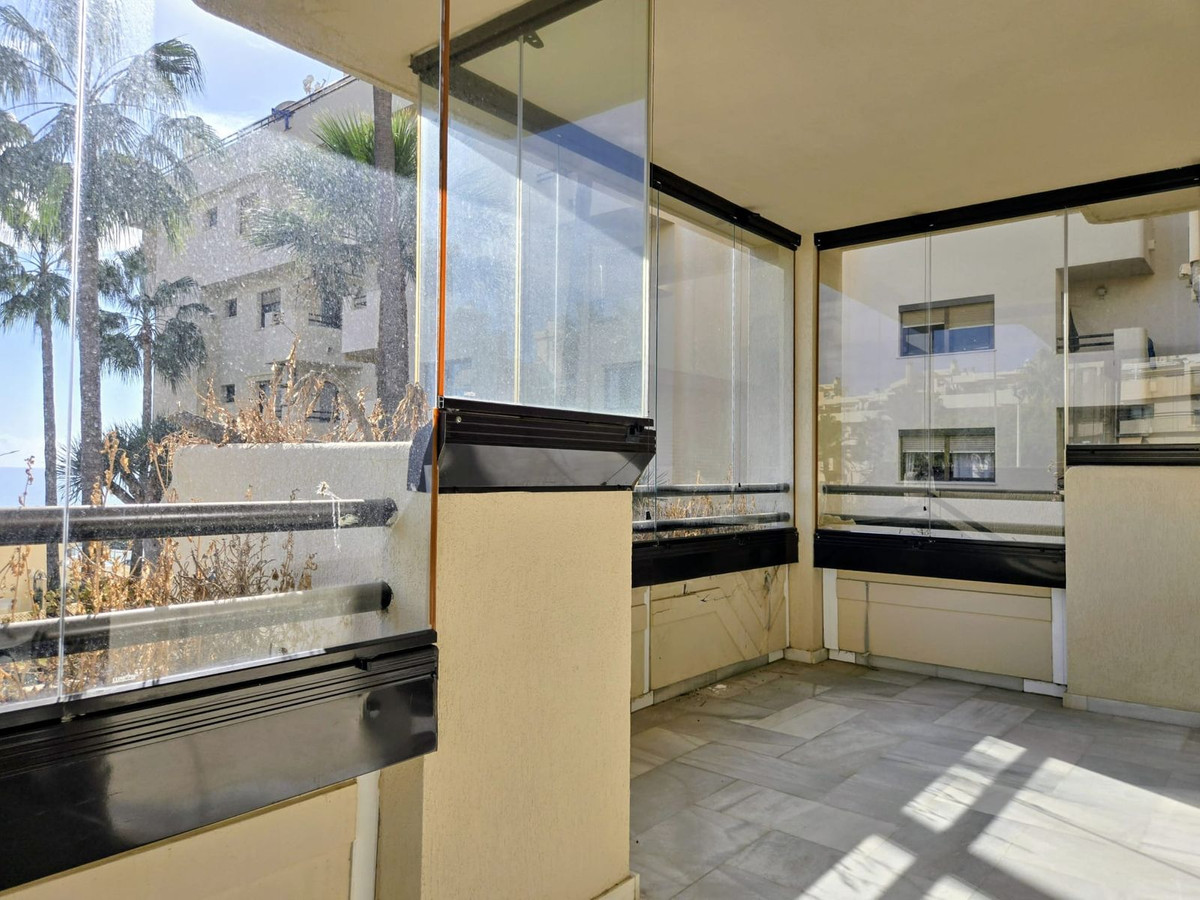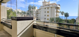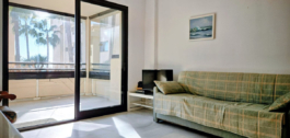Situado en la planta intermedia, el apartamento cuenta con aproximadamente 60 m² de superficie construida más una terraza privada de doble ancho de 10 m², a la que se accede tanto desde el salón como desde el dormitorio. Totalmente cerrada con cortinas de cristal retráctiles, el espacio se puede disfrutar durante todo el año, ya sea para el café de la mañana con vistas al mar o relajantes veladas con vistas a los jardines y la playa. La distribución incluye un dormitorio doble con armarios empotrados, un baño completo, una cocina totalmente equipada y una cómoda zona de estar abierta a la terraza, ideal para relajarse o cenar al aire libre.