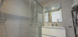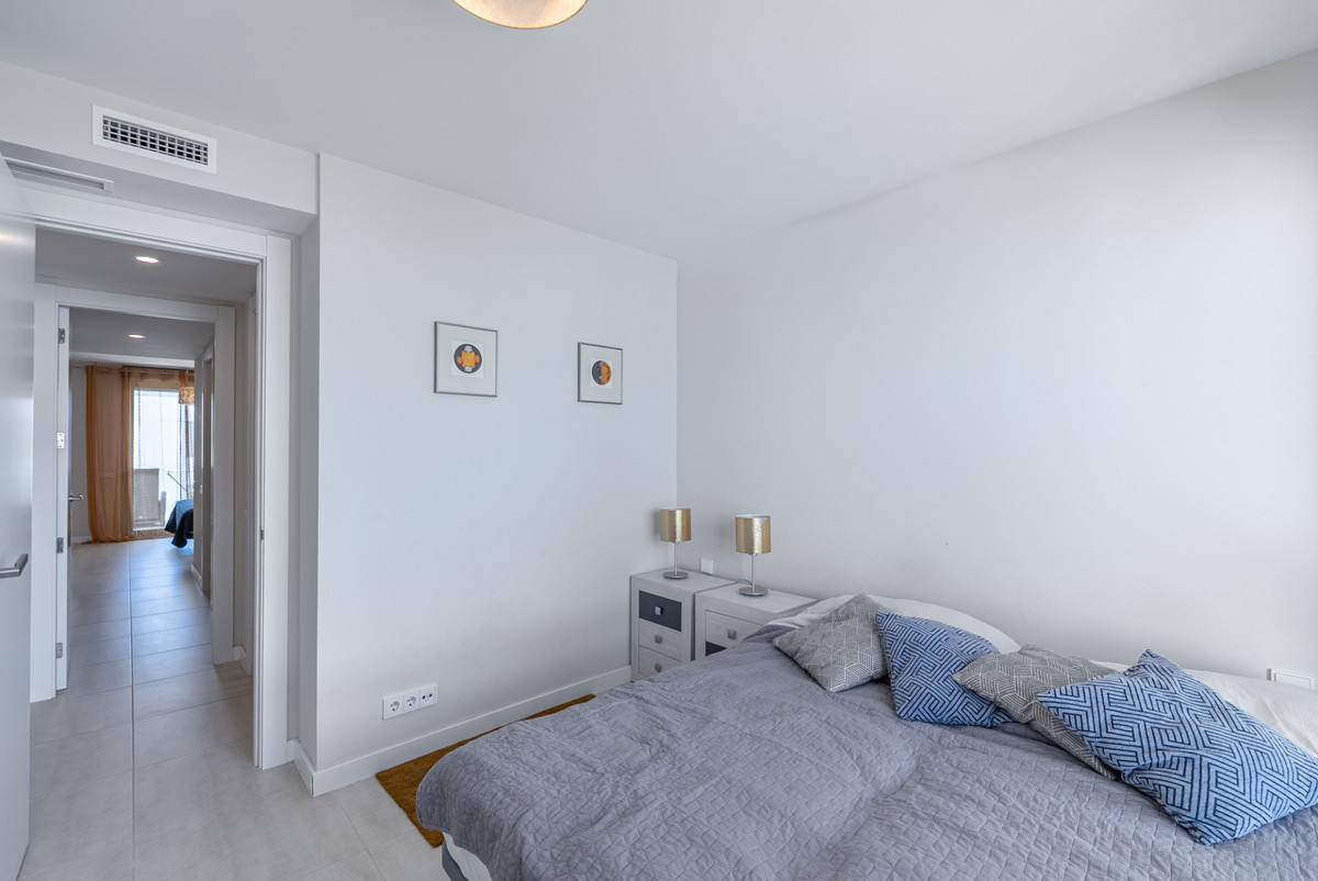 Los acabados y materiales del apartamento reflejan una calidad superior, con suelos de gres porcelánico, carpintería lacada en blanco, aire acondicionado frío-calor por conductos, un sistema aerotérmico de bajo consumo y amplios armarios empotrados.