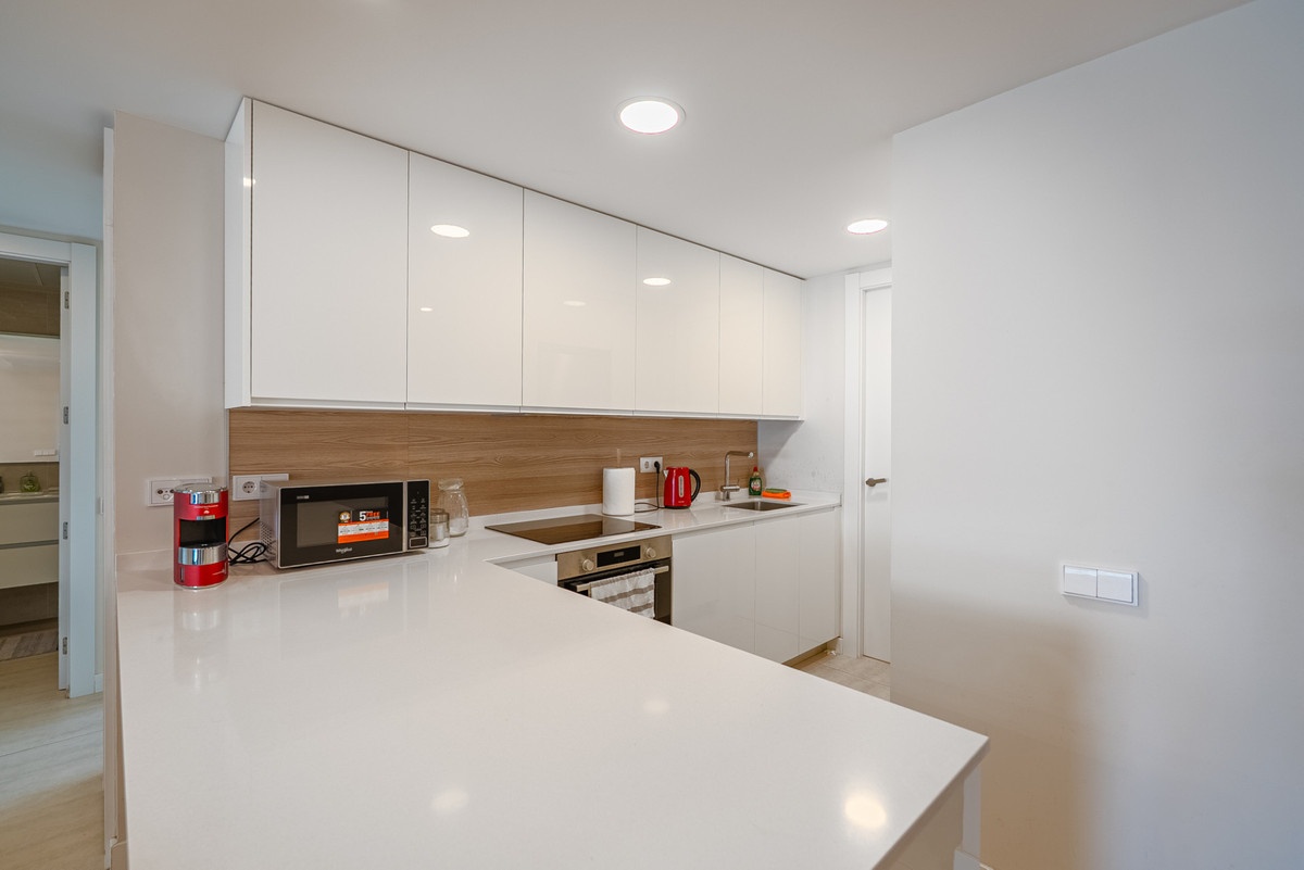 La vivienda cuenta con 2 dormitorios y 2 baños, un luminoso salón-comedor con grandes ventanales y una cocina de diseño totalmente equipada con electrodomésticos de alta gama. La distribución está pensada para ofrecer amplitud, funcionalidad y máxima luz natural, con acceso directo a una terraza privada ideal para disfrutar del aire libre.
