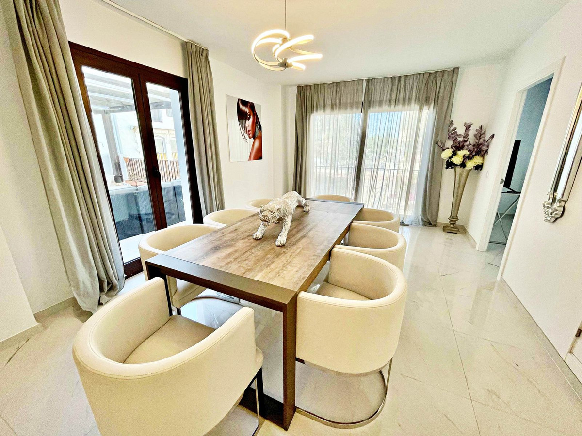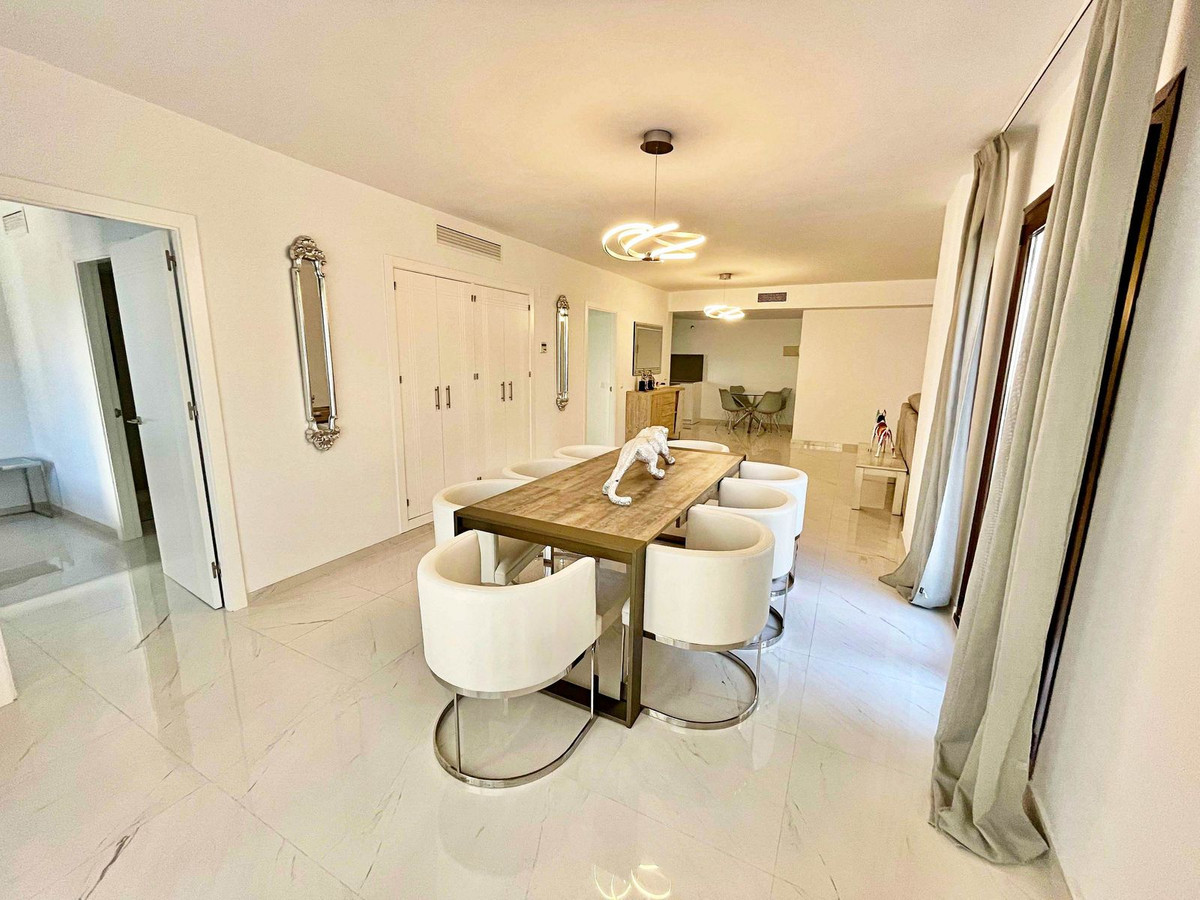 Experimente la vida de lujo en este apartamento de tres dormitorios bellamente renovado, situado en el renombrado complejo residencial Jardines del Puerto. Disfrute de la comodidad del servicio de conserjería y el acceso a piscinas de aguas cristalinas, todo dentro de un entorno seguro y exclusivo.