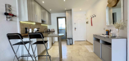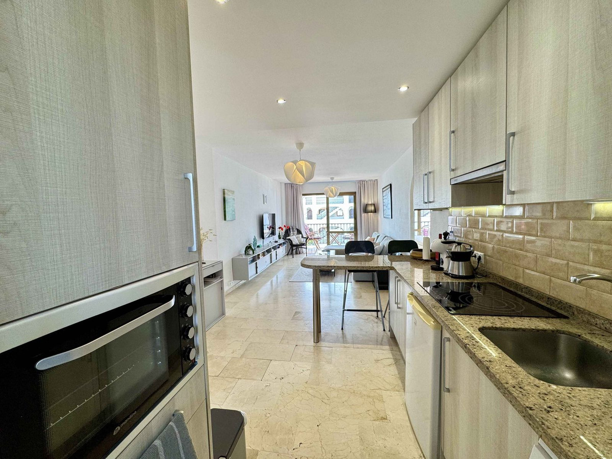 El apartamento está muy bien cuidado, tiene una cocina americana totalmente equipada, aire acondicionado en el dormitorio principal y se vende completamente amueblado.