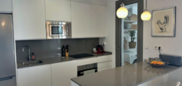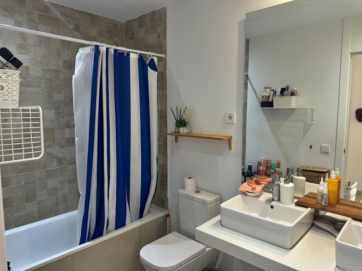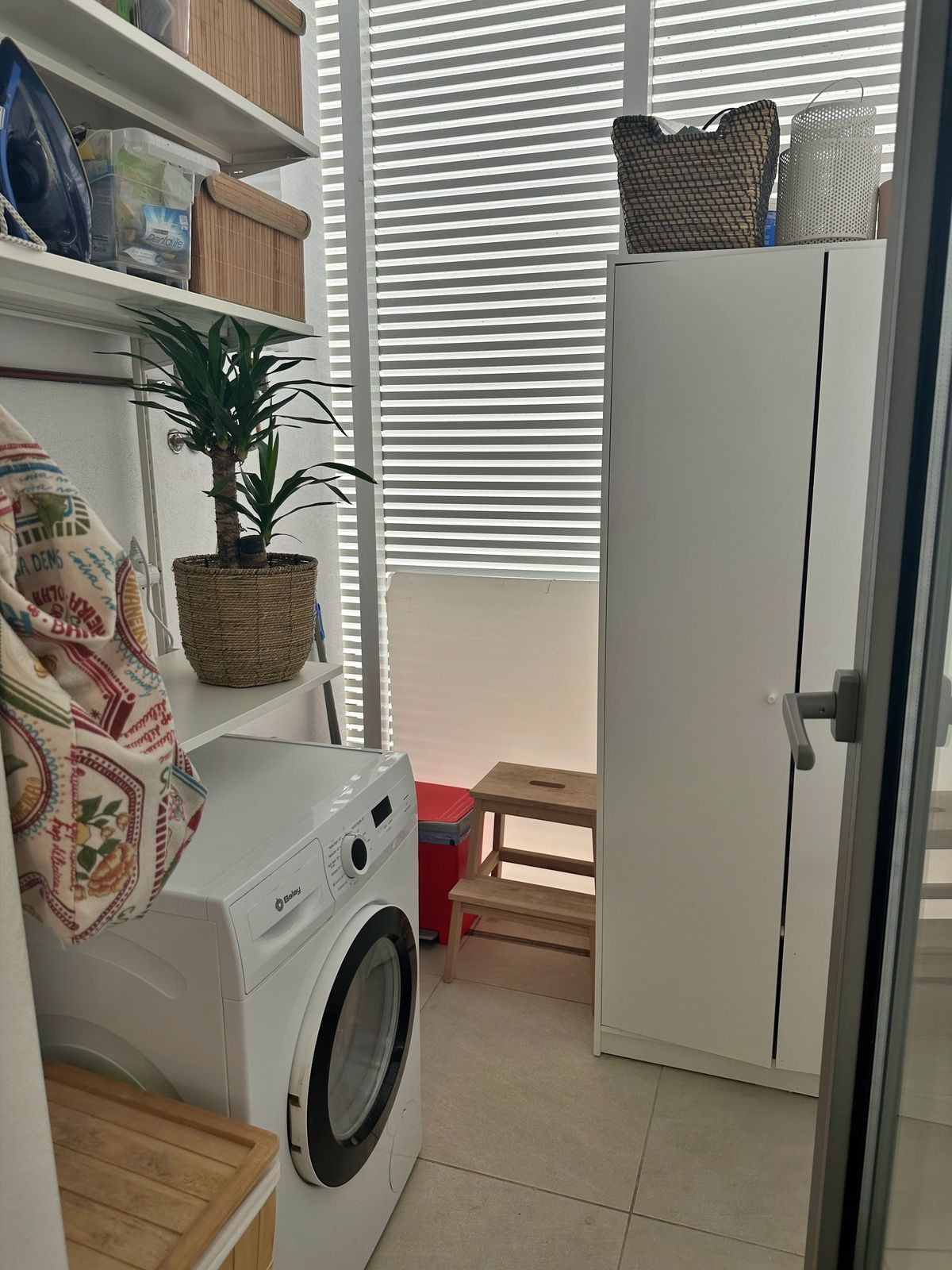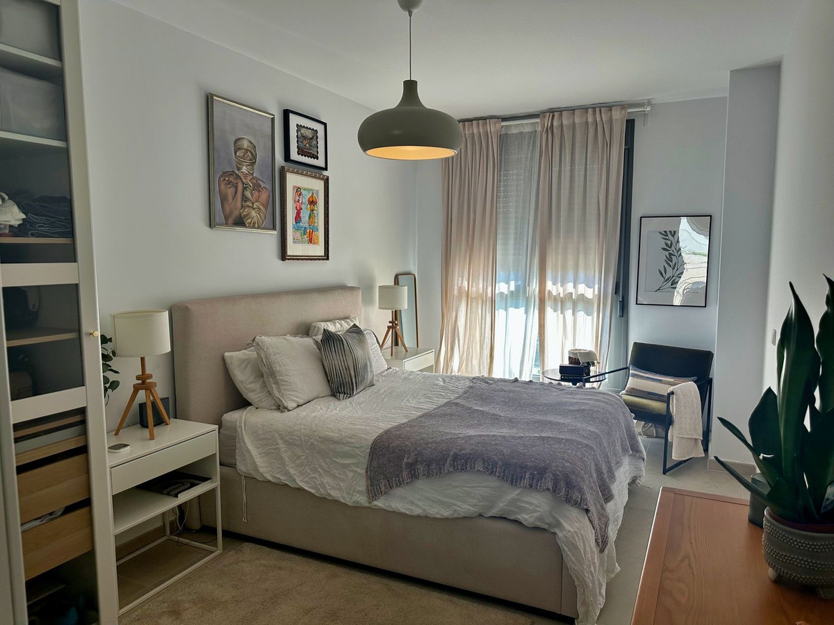 El apartamento está amueblado con gusto, con muebles modernos y de alta calidad, y está listo para entrar a vivir. El salón-comedor de planta abierta conecta directamente con la terraza, creando un espacio luminoso y acogedor. La cocina está totalmente equipada con electrodomésticos modernos y los dos cuartos de baño están acabados con estilo.