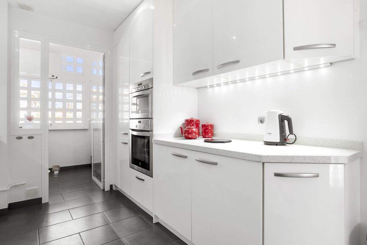 Una cocina moderna y luminosa bellamente renovado viene totalmente equipada con todos los electrodomésticos modernos de gama alta Balay y Siemens con cierre suave de pared y armarios de almacenamiento de base y unidades de cajón que son de un diseño italiano y acabado a una calidad de gama alta, con superficies de encimera de Silestone en contraste, La placa y campana extractora son Balay y la placa tiene cuatro fuegos de gas. Hay una opción de dos hornos empotrados, uno pequeño y uno grande, que es una característica muy útil. El frigorífico Siemens y el lavavajillas Balay también están integrados. Hay la ventaja añadida de un sistema de filtro de agua incorporado bajo el fregadero con un grifo de doble función que proporciona agua potable filtrada. Junto a la cocina, una puerta de cristal conduce a un cuarto de servicio muy útil que alberga la caldera de gas de red, máquina de aire acondicionado, lavadora, y más armarios de almacenamiento con superficies de encimera.