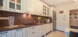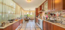 Hay dos cocinas totalmente equipadas, una de las cuales conecta con el salón, ofreciendo una distribución práctica para la vida familiar o el entretenimiento.