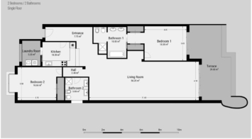 Este espacioso y bonito apartamento cuenta con una cocina nueva, armarios empotrados a medida y un sistema de aire acondicionado de alta gama. La distribución incluye un acogedor vestíbulo, un amplio salón-comedor de planta abierta, una cocina totalmente equipada, un dormitorio principal con baño en-suite, y un dormitorio de invitados con terraza privada y su propio baño espacioso. Lo más destacado de la casa es su amplia terraza de 41 m² orientada al sur, acristalada para disfrutarla todo el año. Otras características de lujo incluyen calefacción por suelo radiante en todo el apartamento.