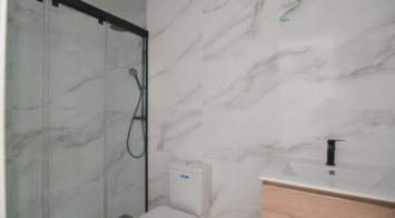 El dormitorio principal tiene baño en suite y los otros dos comparten un baño con ducha.