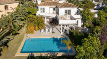 Esta encantadora y luminosa villa de estilo andaluz está situada en el centro de la popular urbanización de Marbesa.