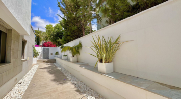 Los elementos clave del diseño incluyen amplias zonas de estar abiertas y grandes ventanales para obtener la máxima luz natural y un mayor espacio. Las ventanas de tamaño completo se pueden ocultar en las paredes, conectando las zonas de estar interiores y exteriores, lo que le permite disfrutar del clima único de Marbella durante todo el año. La parcela está cuidadosamente planificada y bellamente ajardinada, consta de dos partes, con un patio además de la zona principal. Hay una amplia zona de aparcamiento privado para tres coches.