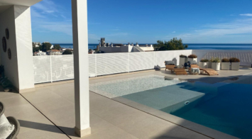 El lujoso apartamento de tres dormitorios en venta en este exclusivo complejo frente al mar ofrece un diseño contemporáneo, amplios espacios interiores con vistas al Mediterráneo a través de enormes ventanales y extensas terrazas con piscinas privadas. El uso de materiales de alta calidad y tecnología de vanguardia hacen de esta promoción una auténtica joya. Todas las viviendas cuentan con al menos dos amplias plazas de garaje y un trastero.
