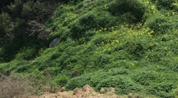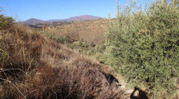 Finca de secano, en pendiente a la entrada, con dos zonas llanas hacia el arroyo Pilones.