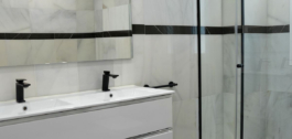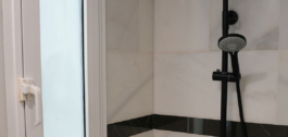 El cuarto de baño, de diseño elegante y funcional, es completo y está equipado con un cómodo plato de ducha y un lavabo doble.