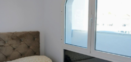 Dispone de tres dormitorios: el dormitorio principal es muy amplio, equipado con armario empotrado, y tiene acceso directo a la terraza con grandes ventanales para que puedas disfrutar de mucha luz. El segundo dormitorio está equipado con una cama de matrimonio y también tiene acceso a la terraza. El tercer dormitorio tiene una litera triple.