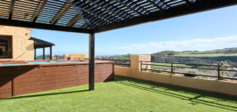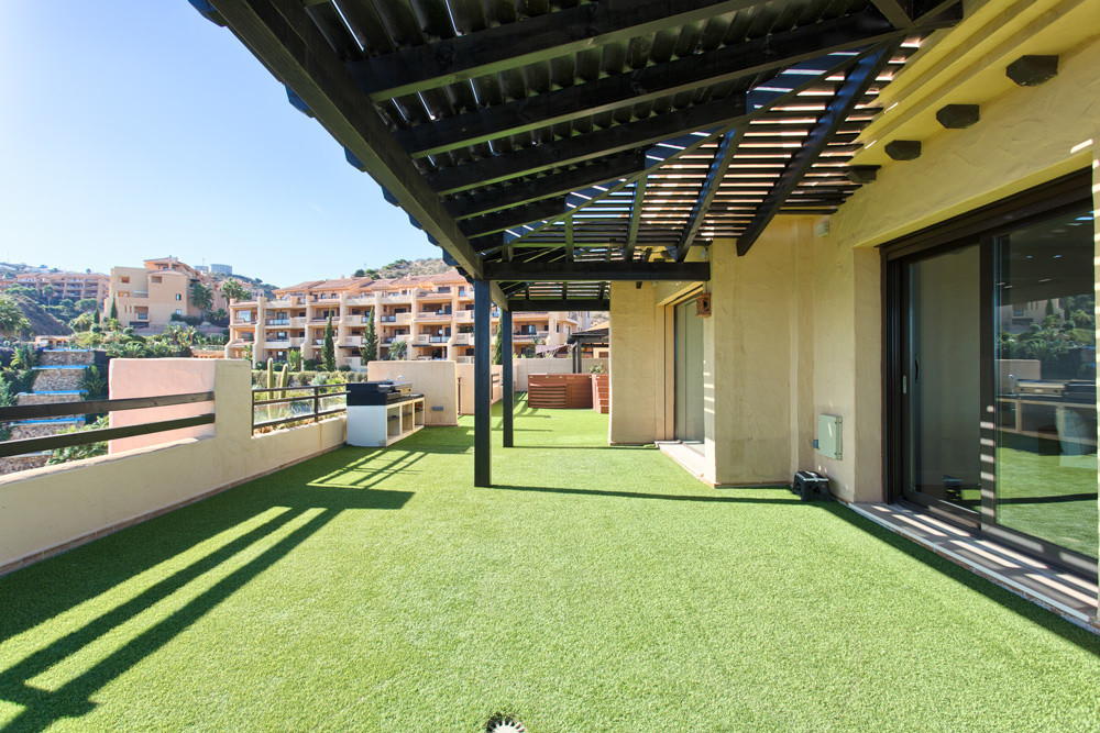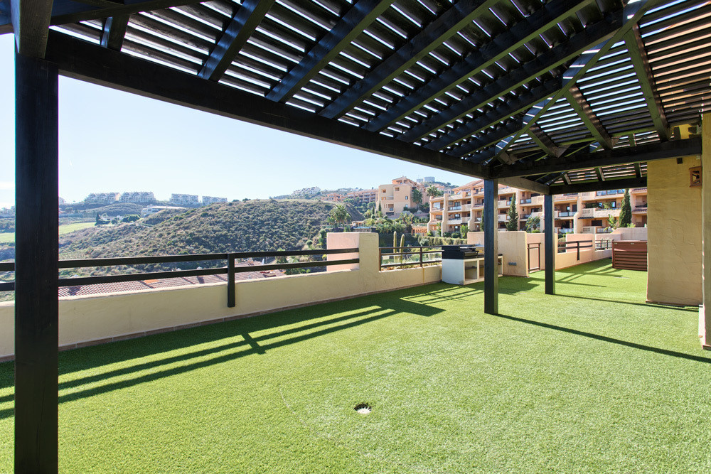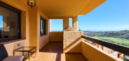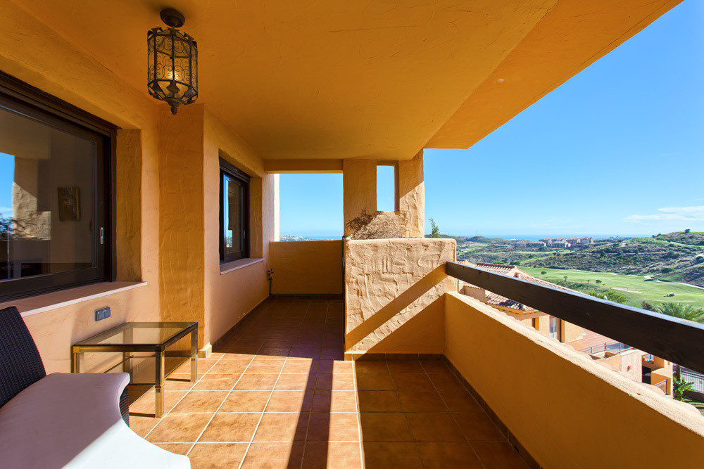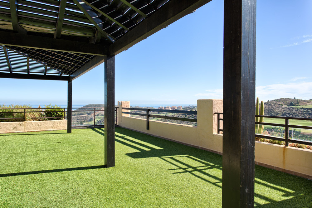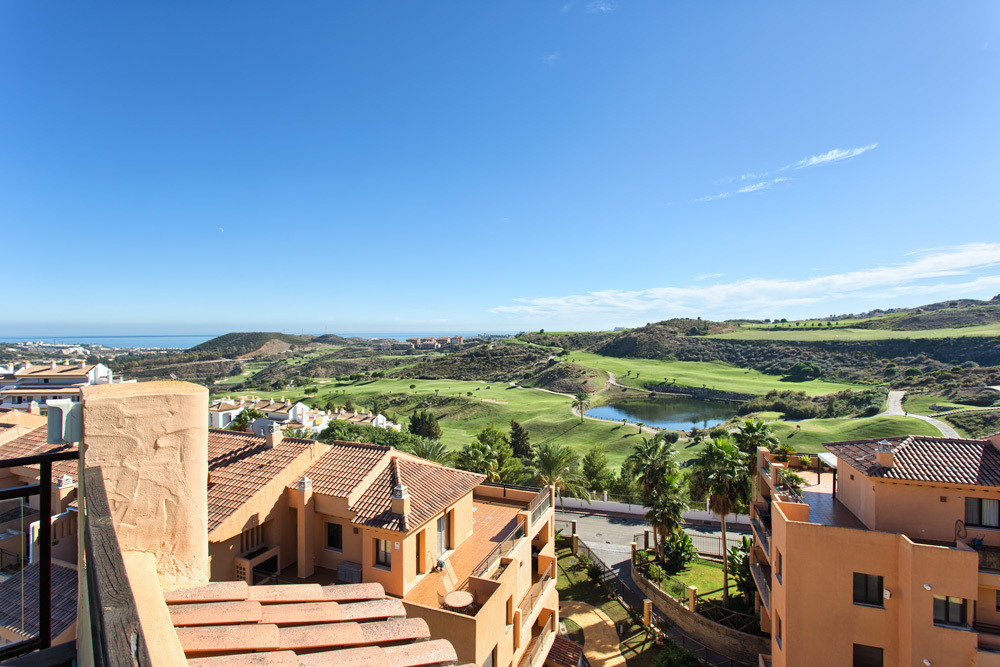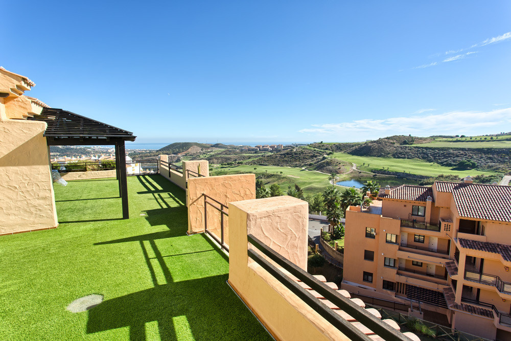 Ventanas de doble acristalamiento y persianas eléctricas, suelos de madera de roble en todo y aire acondicionado frío y caliente son características estándar de este ático dúplex. La terraza tiene una cálida sensación de vida al aire libre con impresionantes vistas panorámicas al mar, montaña y golf.