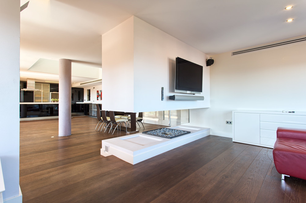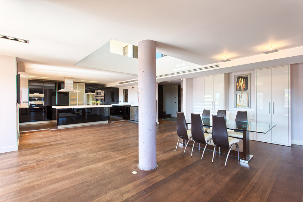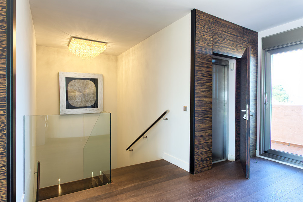 Siendo un ático dúplex de los cuatro dormitorios todos en suite se distribuyen en 2 plantas hay un ascensor a ambas plantas, un aseo de invitados en el nivel inferior, el salón principal tiene una chimenea y es muy espacioso con natural de las grandes ventanas todas abiertas a la terraza parcialmente cubierta. La cocina totalmente equipada con todos los electrodomésticos Bosh, Miele y Siemens.