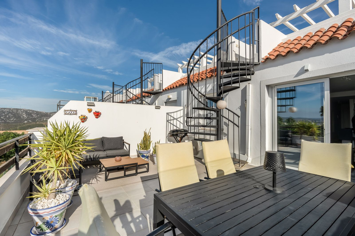 Bienvenido a esta encantadora casa con 2 dormitorios y 2 baños, un lugar donde la tranquilidad se encuentra con hermosas vistas. Disfrute de una soleada terraza en el salón y una azotea privada con vistas panorámicas del mar, las montañas, el entorno natural y la prestigiosa zona de Finca Cortesín.