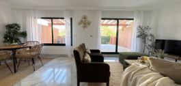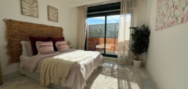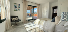 Este espacioso ático dúplex de esquina tiene las más espectaculares y panorámicas vistas al mar y al golf desde la gran terraza privada con su propia piscina privada. El nivel inferior es donde se encuentra el luminoso salón comedor abierto con terraza generosa, gran cocina independiente y lavadero, un dormitorio doble y un baño. Arriba tiene otro dormitorio doble, cuarto de baño y el amplio dormitorio principal con baño en-suite. Desde este nivel también tiene acceso a la enorme terraza principal con sol todo el día y el lugar ideal para disfrutar de esas inmejorables vistas. La propiedad está situada a poca distancia de Cabopino con su maravillosa playa, así como el puerto deportivo con un montón de bares y restaurantes para elegir. Los propietarios también tienen el uso de la magnífica piscina comunitaria y jardines.