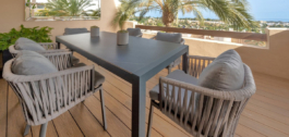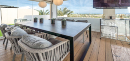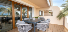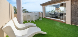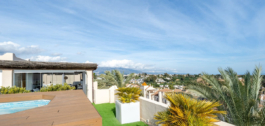 Un impresionante ático dúplex de 3 dormitorios con increíbles vistas al mar, presentado en un estado impecable. No es frecuente que una propiedad tan hermosa llegue al mercado. Los actuales propietarios, obviamente, han cuidado con amor este hermoso ático y se presenta en un estado impecable. La joya de la corona es la impresionante terraza que ofrece vistas panorámicas. Ofrece una piscina privada, un gran bar y zona de estar para esas ocasiones sociales, y un montón de espacio para tumbonas y zona de comedor. Eso no es todo lo que ofrece este espacio – parte de la terraza ha sido acristalada y alberga una cocina exterior totalmente equipada, un comedor para 10 personas y otra zona de estar con grandes sofás. Esta espaciosa zona puede acomodar fácilmente a grandes grupos para el entretenimiento y está elegantemente iluminada con una discreta luz no directa que crea un ambiente maravilloso.