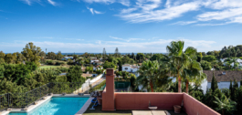 Sin embargo, la característica más deslumbrante de esta deslumbrante propiedad es su terraza aparentemente ilimitada que serpentea alrededor de la residencia ofreciendo vistas ubicuas del mar, las montañas y los jardines perfectamente cuidados de la comunidad cerrada que rodean la piscina comunitaria.