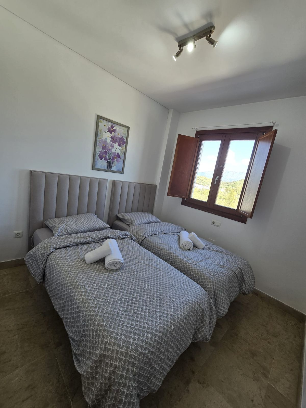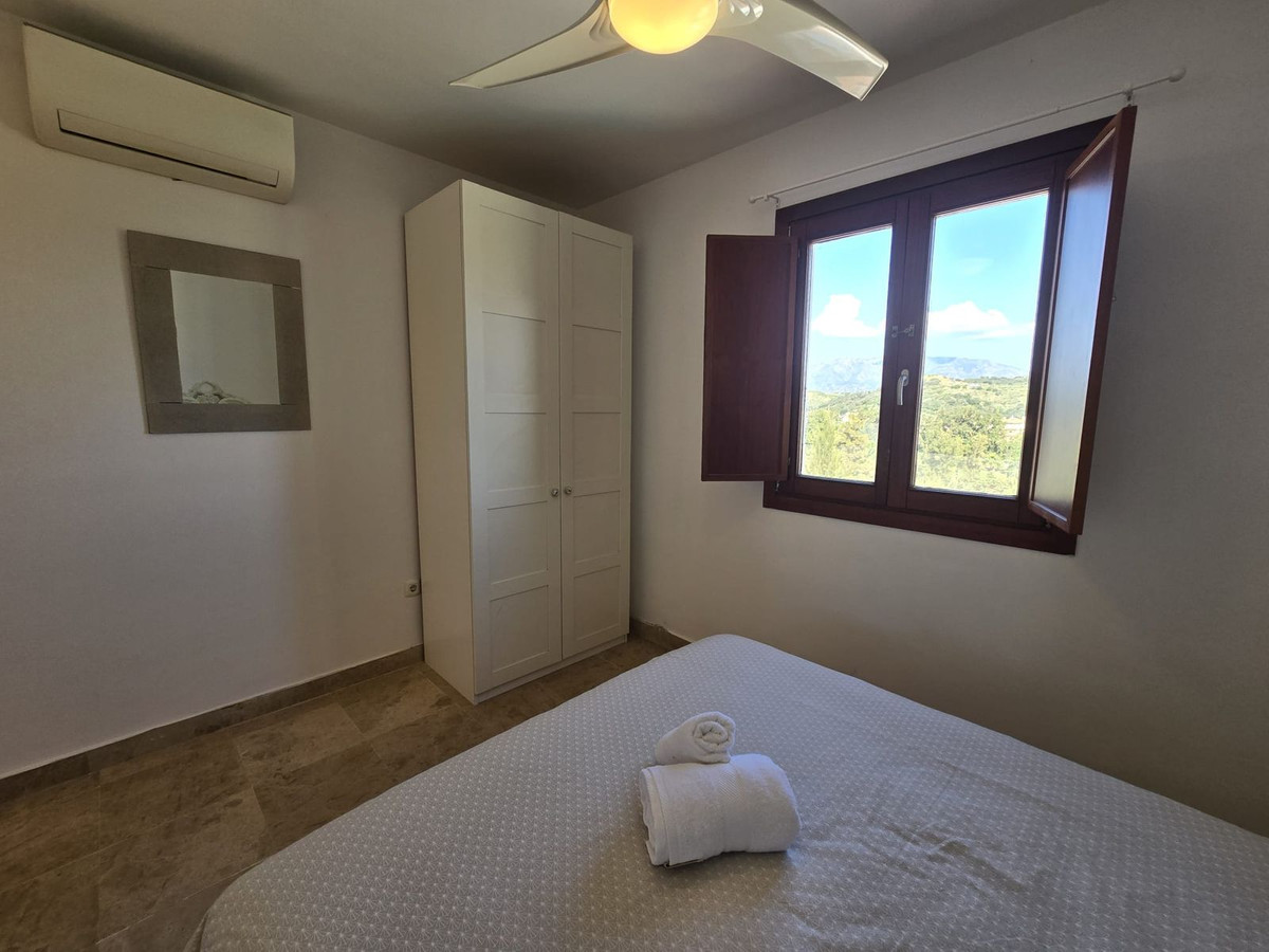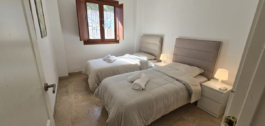 La primera planta consta de 3 dormitorios y dos baños completos (uno en-suite), todos los dormitorios tienen armarios empotrados. A continuación en la planta baja encontramos un aseo de invitados, cocina y salón comedor, ambas estancias con acceso directo a una gran terraza con vistas al mar, montaña, golf y a una de las piscinas (hay 2) de la urbanización. Orientación sureste.