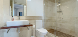 En la planta superior, el dormitorio principal también dispone de cuarto de baño.