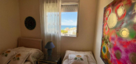 La propiedad consta de dos amplios dormitorios con vistas al mar, dos baños completos, una cocina totalmente equipada y una agradable terraza de 8 m², perfecta para disfrutar del entorno.