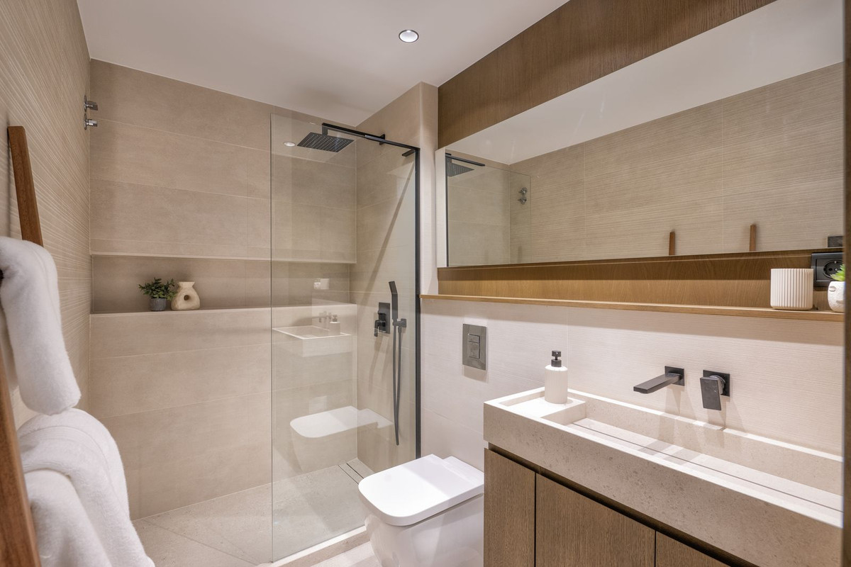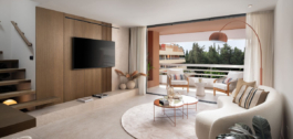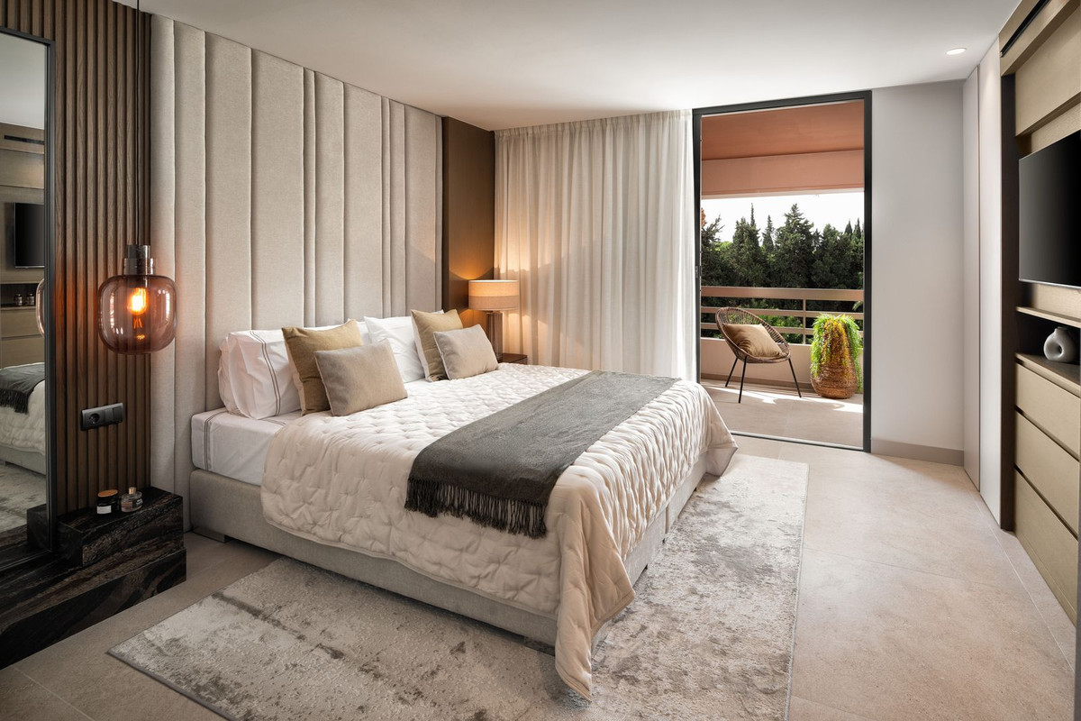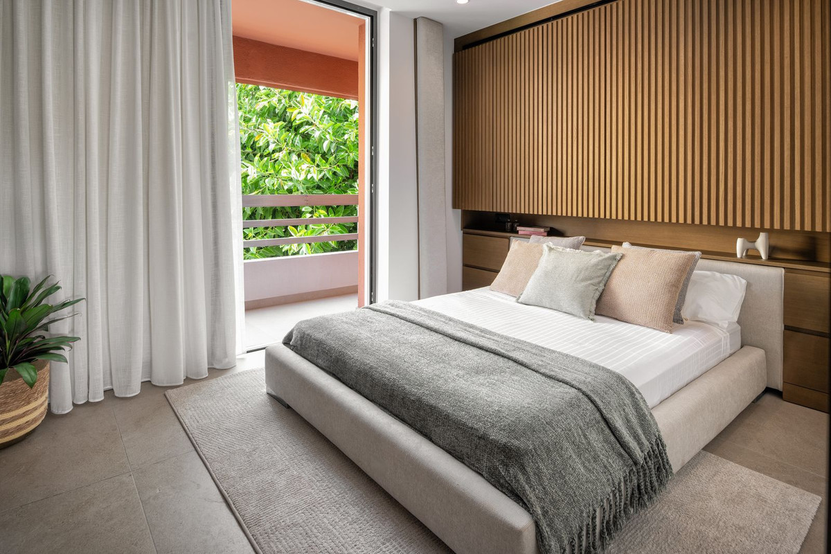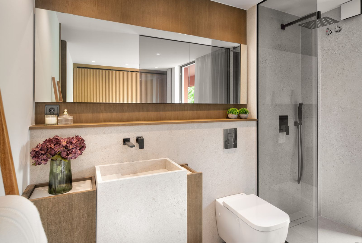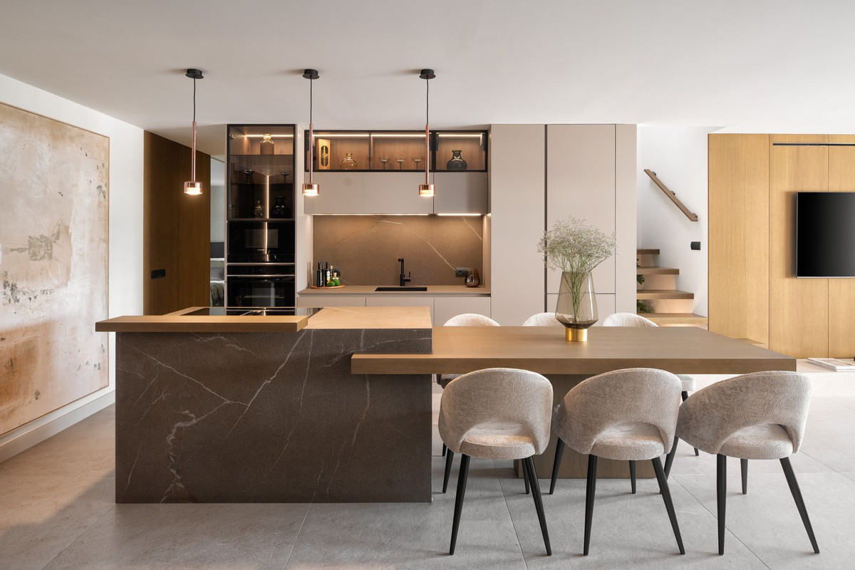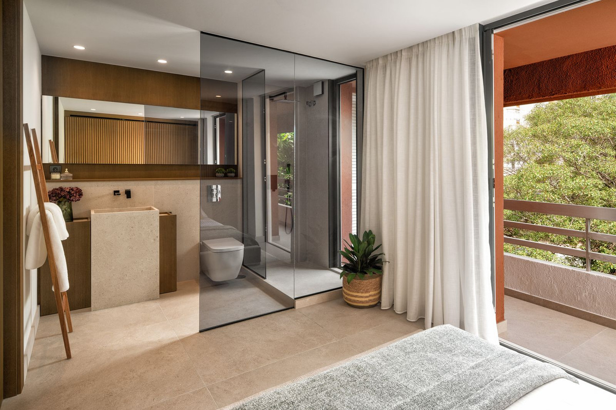 Al entrar en el apartamento, le da la bienvenida una impresionante cocina en isla que establece el escenario para el resto del espacio, ya que se integra armoniosamente en la sala de estar y más allá en la terraza, dando la impresión de que es una parte de la sala de estar. Disfrute de las tranquilas vistas de los verdes jardines desde su cocina, donde la luz del sol entra a raudales para llenar cada centímetro cuadrado. La elección de los materiales y la paleta de colores infunden a esta zona una sensación de paz, comodidad y sutil elegancia.