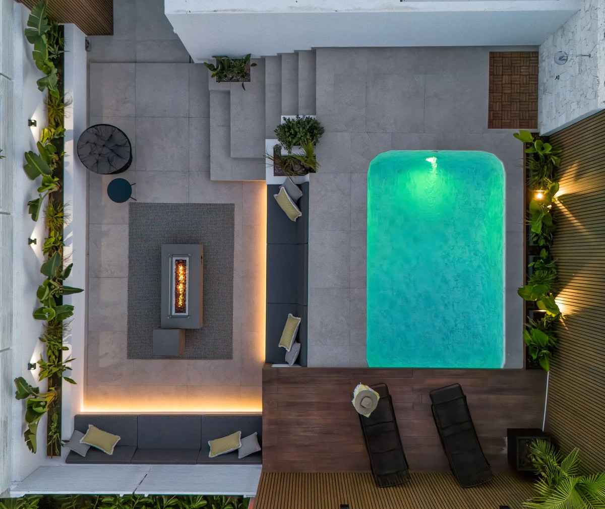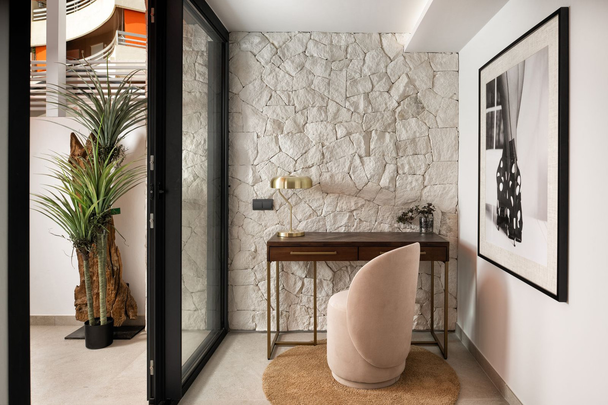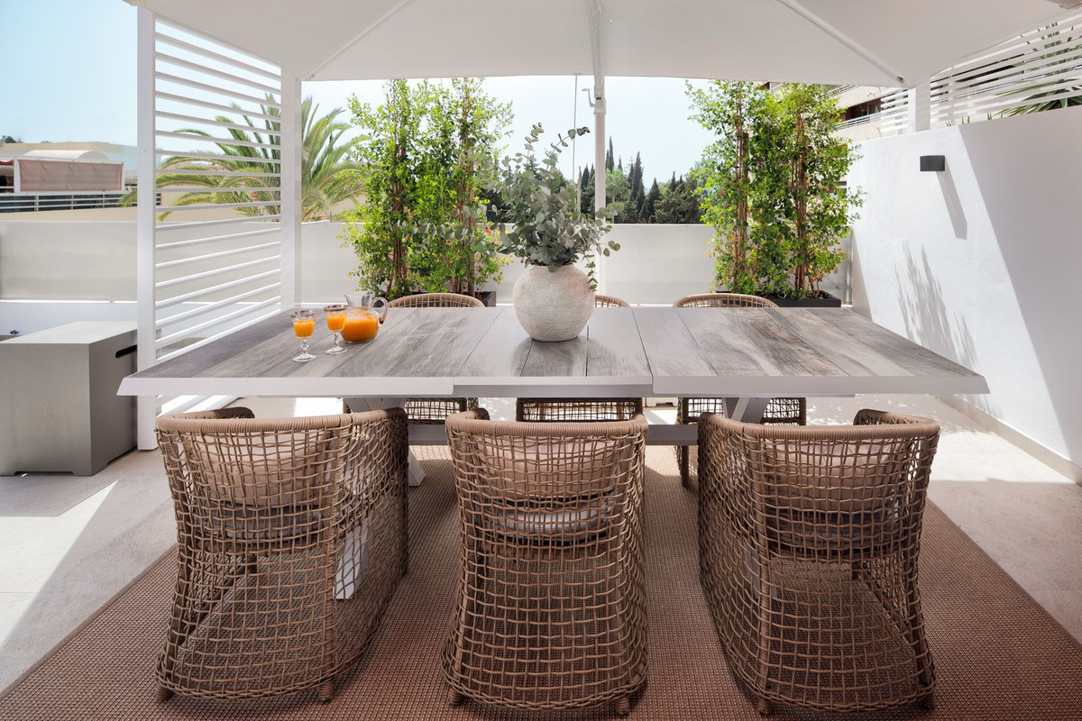 La característica más destacada del ático es su terraza privada en la azotea, donde le espera una resplandeciente piscina con una acogedora chimenea y una moderna zona de barbacoa. Tanto si desea celebrar una reunión íntima como disfrutar de una tranquila velada bajo las estrellas, este espacio es su paraíso personal.