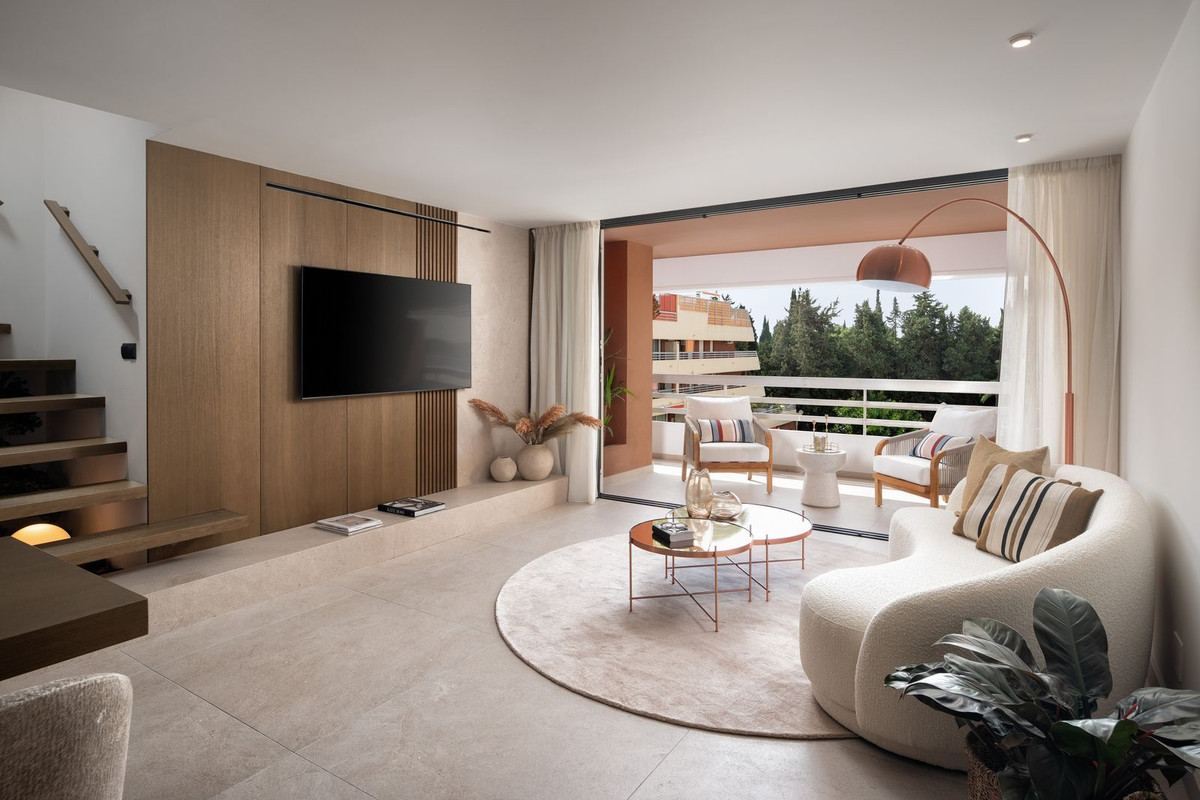 Un ático dúplex único situado en el animado centro de Marbella y a sólo un agradable paseo de tres minutos de la playa. Esta propiedad totalmente amueblada, que se extiende por 300 metros cuadrados y cuenta con tres dormitorios y tres cuartos de baño perfectamente finamente terminado, es una obra de artesanía de detalle y la más fina calidad de los materiales.