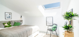 En la planta superior se encuentra el dormitorio principal en suite, con su propia terraza y claraboya, así como un dormitorio de invitados en suite. Ambos cuartos de baño tienen claraboyas.