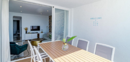 El salón cuenta con una cocina abierta y da a la terraza principal, a la que se puede acceder directamente desde el salón y la cocina.